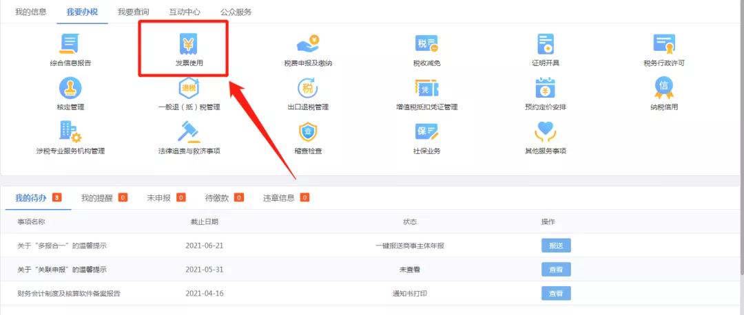 1、登錄深圳市電子稅務(wù)局,點擊首頁“我要辦稅”,選擇“發(fā)票使用”。